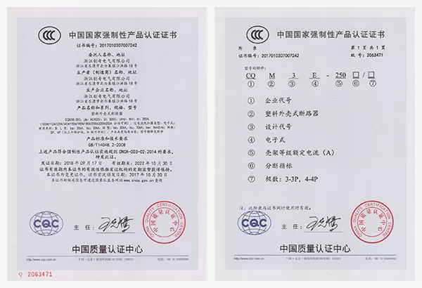 Note:1. According to the IEC60947-1 term "life" denotes the probability of the number of operating cycles that an electrical appliance completes before repairing or replacing components. 2.Zero flying arc cover with height of 4mm (CQM3-63L/M,), 6.2mm CQM3-100L/M, 7.5mm (CQM3-250L/M), 9.3mm (CQM3-400L/M, CQM3-630L/M) and 9.5mm (CQM3-800L/M) is selected to realize zero flying arc.