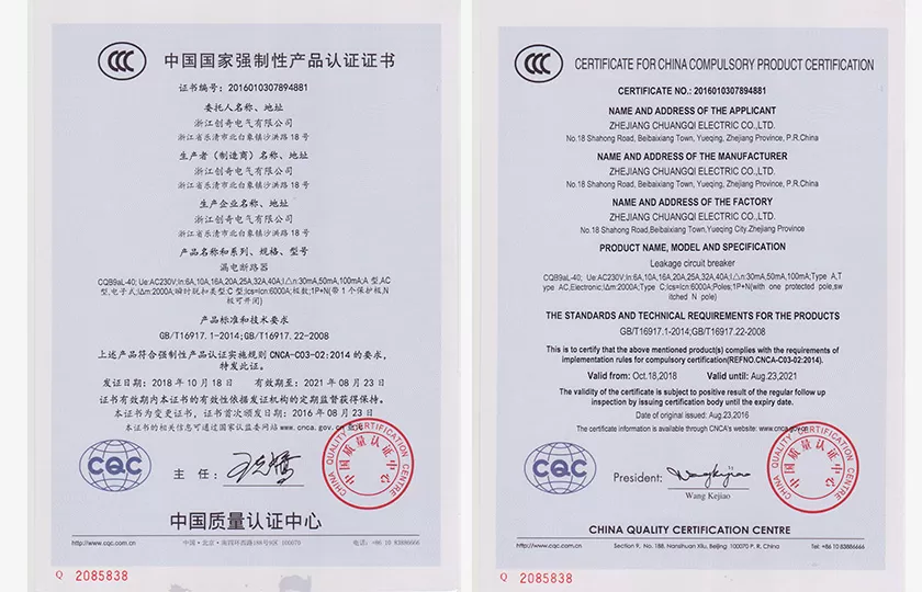 The product meets the standards of IEC 61009-1 and GB16917.1 .
